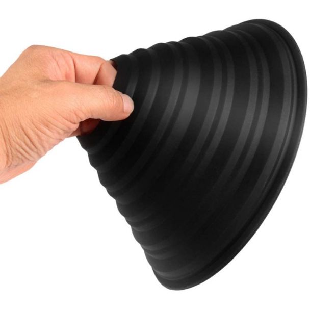 Grote rubberen zonnekap, speciaal bedoeld om door glas heen te fotograferen. Hierdoor voorkom je dat je reflecties van jezelf of je omgeving in de foto terug ziet. Door het gebruik van deze grote zonnekap kun je prima door glas fotograferen en voorkom je reflecties (van het glas) in je foto. Ideaal voor (bijvoorbeeld) het fotograferen van een aquarium. Geschikt voor elk merk lens. Leverbaar in 3 maten.