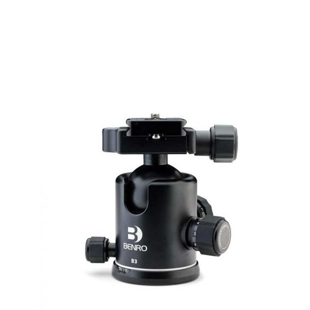 Het Benro B-balhoofd heeft drie afzonderlijke draaiknoppen: een om de horizontale rotatie te vergrendelen, een om de weerstand van het balhoofd af te stemmen op de gebruikte camera en een om het balhoofd te vergrendelen. Doordat de weerstand perfect op het gewicht van camera en lens is af te stemmen, kan de camera eenvoudig worden verdraaid zonder dat deze omvalt door het eigen gewicht.