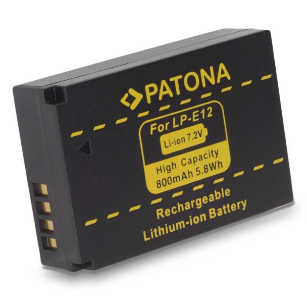 Patona accu. Perfecte vervanger voor de originele Canon LP-E12 accu. De Patona accu's zijn samengesteld uit hoogwaardige Li-Ion cellen welke voldoen aan de strengste (Duitse) keuringseisen. Tevens voorzien van afdekkapje voor de contacten.