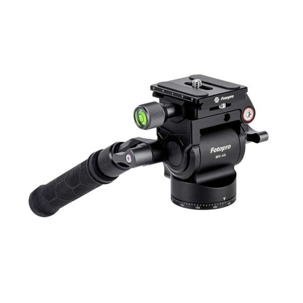 Lichtgewicht en flexibel: Fotopro MH-4A videokop met 3 kg draagvermogen, hydraulische demping, en verstelbare handgreep.