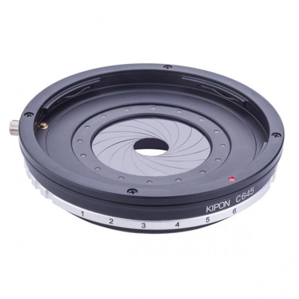 Unieke hoge kwaliteits adapter van Kipon om de Contax 645 (C645) mount lenzen te monteren op een Nikon F mount camera. Adapter is voorzien van ingebouwd diafragma welke traploos is in te stellen. Focus op oneindig is mogelijk.