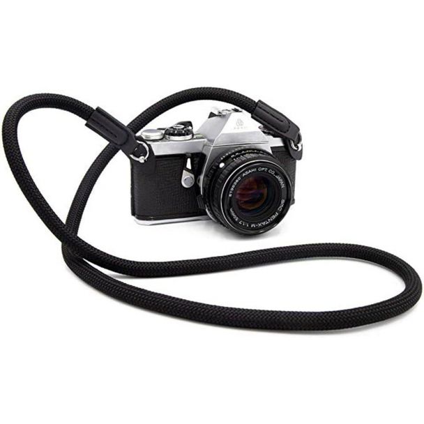 Mooie moderne draagriem welke perfect bij je systeemcamera past. De riem met zijn moderne uiterlijk is gemaakt van solide en glad koord. Hierdoor is hij comfortabel en stevig in het gebruik. De geweven structuur staat borg voor de veiligheid van je camera, daarnaast is de bevestiging voorzien van bescherming waardoor de bevestigingsringen niet je kostbare camera kunnen beschadigen. De lengte van de riem is ca. 100cm.