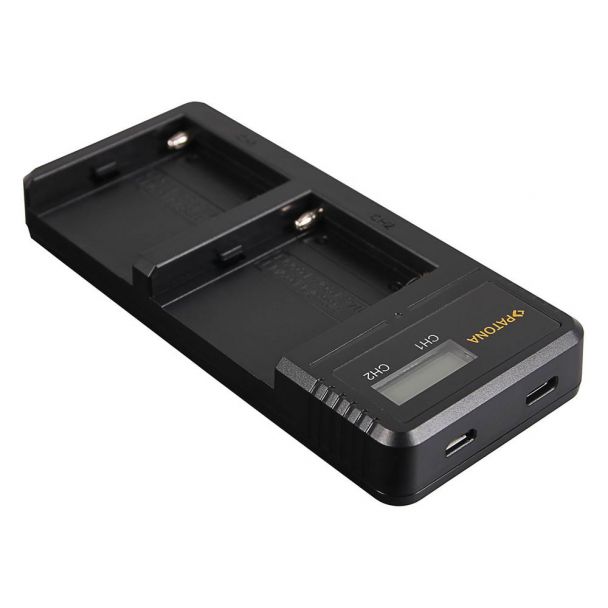 De Patona F serie Duo USB lader met LCD is in staat om 2 Sony F550, F750 of F950 (compatible) accu's tegelijkertijd te laden. Wordt standaard geleverd inclusief Micro USB kabel. Voorzien van overhittingsbeveiliging (auto cut-off).