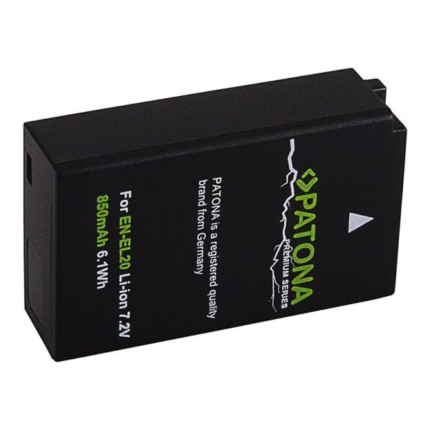 Patona Premium accu. Perfecte vervanger voor de originele Nikon EN-EL20 accu. Betreft de premium uitvoering welke een hoger vermogen heeft dan de standaard versie. Hierdoor is het mogelijk om langer te fotograferen/filmen. De Patona accu's zijn samengesteld uit hoogwaardige Li-Ion cellen welke voldoen aan de strengste (Duitse) keuringseisen. Tevens voorzien van afdekkapje voor de contacten.
