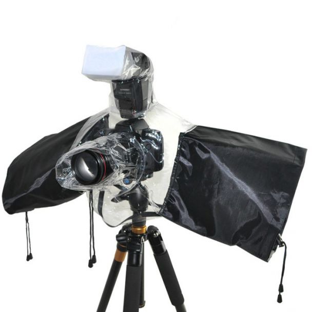 Deze voordelige regenhoes meet 67 x 27 cm en heeft links en rechts een opening voor uw handen. Aan de onderkant zit een ritssluiting die een statief kan omsluiten. Aan de bovenkant zit een transparante koker waar een opzetflitser in past. En gebruik je de flitser niet? Dan kan de flitserhoes er gewoon bovenop blijven liggen.