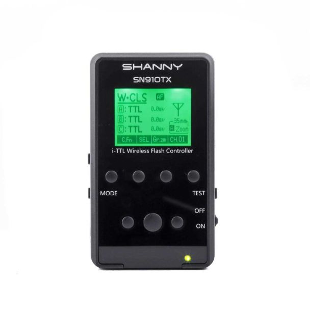 De Shanny SN910TX draadloze LCD flitstrigger is dé professionele oplossing voor het draadloos aansturen van Shanny SN910EX-RF Nikon flitsers binnen het W-CLS systeem. Met deze krachtige zender bedien je tot 50 meter afstand je flitsers, deel je ze eenvoudig in groepen in en pas je instellingen als HSS, flitskracht (1/128 tot 1/1 in 1/3e stappen), stroboscopische flits en zoom op afstand aan via het overzichtelijke LCD-display. De SN910TX ondersteunt i-TTL, M en Multi flash modes en biedt 15 radiokanalen voor betrouwbare communicatie.